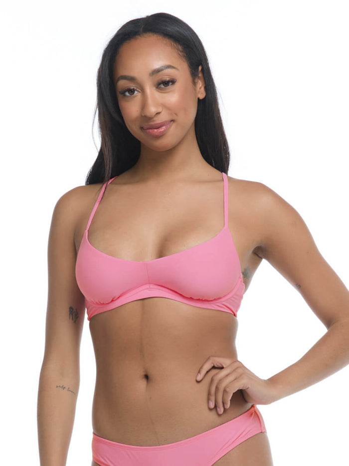 A sexy scoop neckline and underwire support adds sensational shaping and comfort to this timeless silhouette. The Smoothies Palmer Top in Pitaya features removable soft cups, an adjustable three-hook back and adjustable straps that can be worn parallel or criss-crossed.