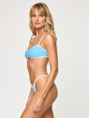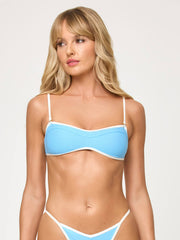 Alright sun worshippers, we've got your new favorite bikini top! The Selena Top in Seaspray/Cream from L*Space is a strapless bandeau with optional straps, an adjustable hook back closure, and ribbed fabric with color-contrast binding. Pair Selena with the matching Pixie Bottom and stretch out in the warm sun like the goddess you are!