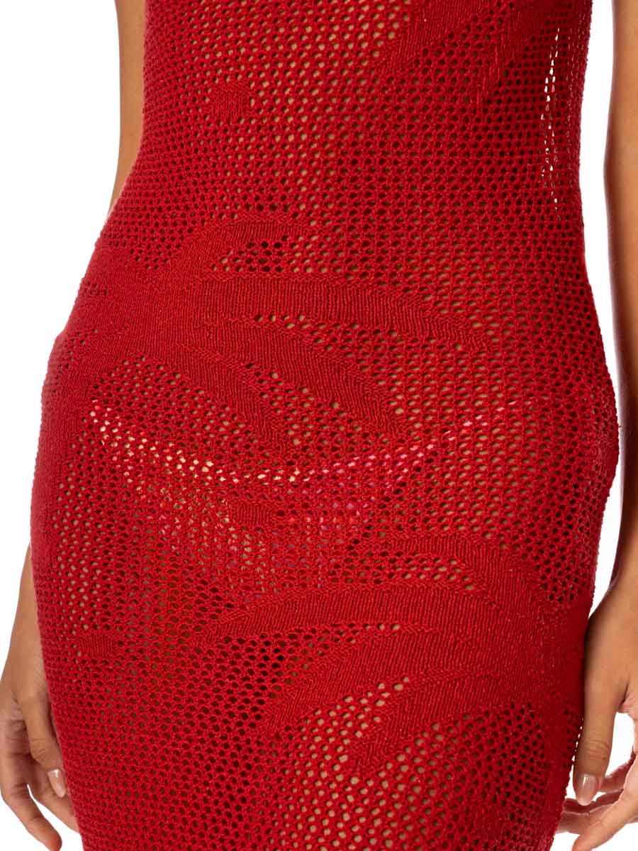 This full length, allover crochet dress brings the heat with it's tank dress styling, scoop neckline, low cut back, and side slits. The Flame Coral Nougath Long Dress from Maaji is the perfect addition to your days at the beach or cocktails by the pool.