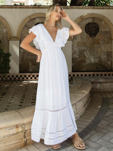 Romantic boho feels in this pretty one piece from Polo Ralph Lauren. The Eyelet V Neck One Piece in Olive features an allover eyelet embroidery with a deep V neckline, thin adjustable straps, and removable cups.