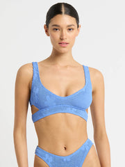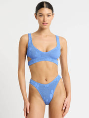 Super sexy side cut outs make this pullover bralette bikini top stand out in a crowd! The Nino Crop in Cornflower Floral features a an ultra low neckline, wide straps, and a wide underbust band for that extra bit of support. This one is bound to turn some heads!