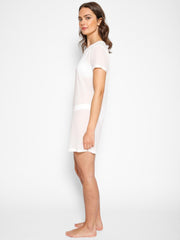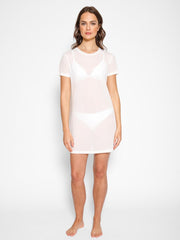 Sheer perfection! The Escape Mesh T-Shirt Dress in White from Koy Resort features an allover sheer, mesh fabric, a crew neckline with short sleeves and a mini length. Effortlessly laid-back-cool vibes and light as air, the perfect cover up!