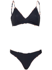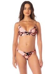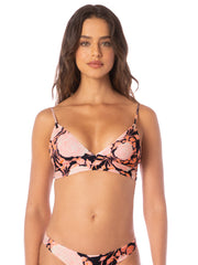 This longline style bikini top is reversible! The Copilot Top in Rose Petals from Maaji features a deep V neckline with a wide supportive underbust band, adjustable straps, and an adjustable lace up and tie back closure. We are smitten with the choice of a black and pink rose print on one side and a solid black on the other. 2 tops in 1 !!!