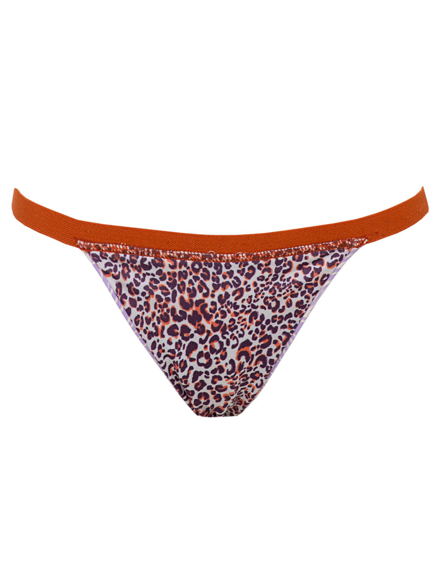 This cheeky little bikini bottom combines the feminine allure of abstract floral print with a contrasting lurex trim elastic banding the shimmers in the sun! The Wisteria Bloom Noah Regular Rise Single Strap Bikini Bottom features a single continuous waistband strap of lurex elastic and cheeky rear coverage. Perfect for catching some sun!