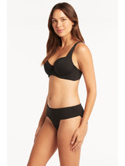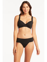 Roll them up higher, or roll them down lower, you choose! The Eco Essentials Roll Band Bottom in Black features a fold-over waistband and moderate to full rear coverage. The powermesh lining provides extra smooth shaping and support with light tummy control. Fabulous fit and effortless comfort make this bottom ideal for mixing and matching with all your favorite tops!